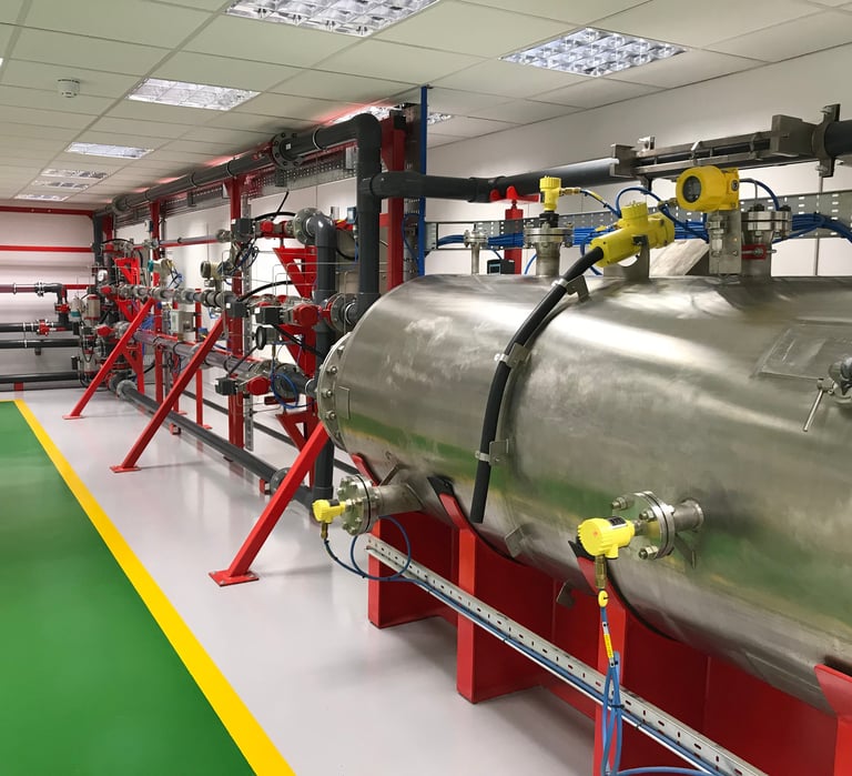 The client was relocating their business to a larger facility and wanted to take the opportunity to re‑design and expand their highly successful training rig. Their goal was to create a modernised, larger‑scale system with additional flow lines of different sizes, allowing more instrumentation to be installed and tested. They also wanted to incorporate the latest technologies from leading suppliers such as Emerson, Siemens, Rheonik, and VEGA. The challenge was to deliver a fully modernised, industry‑relevant training rig on time, within budget, and to the highest quality standards.